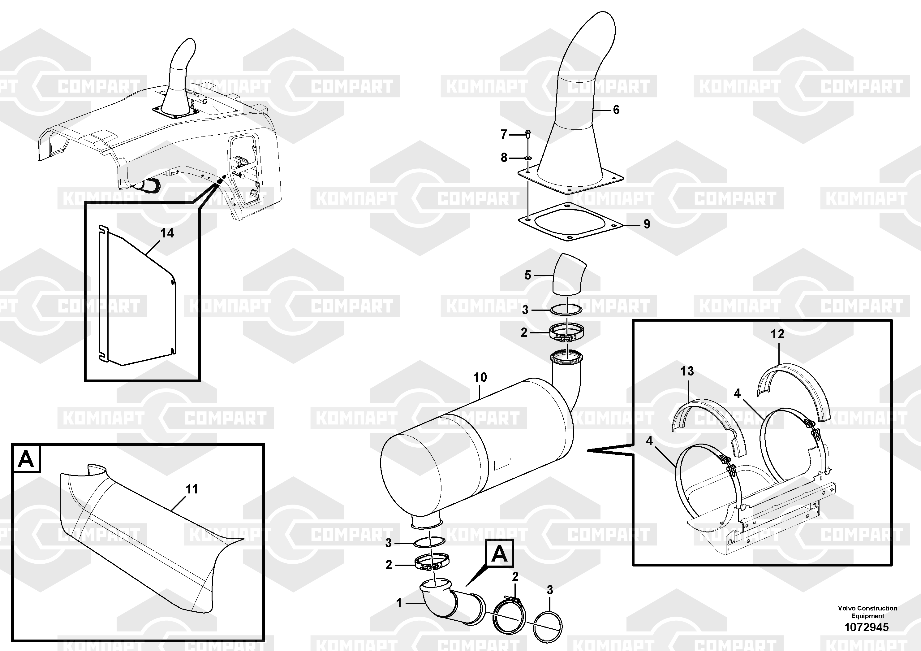 Выхлопная система, глушитель ФРОНТАЛЬНОГО ПОГРУЗЧИКА VOLVO L150G