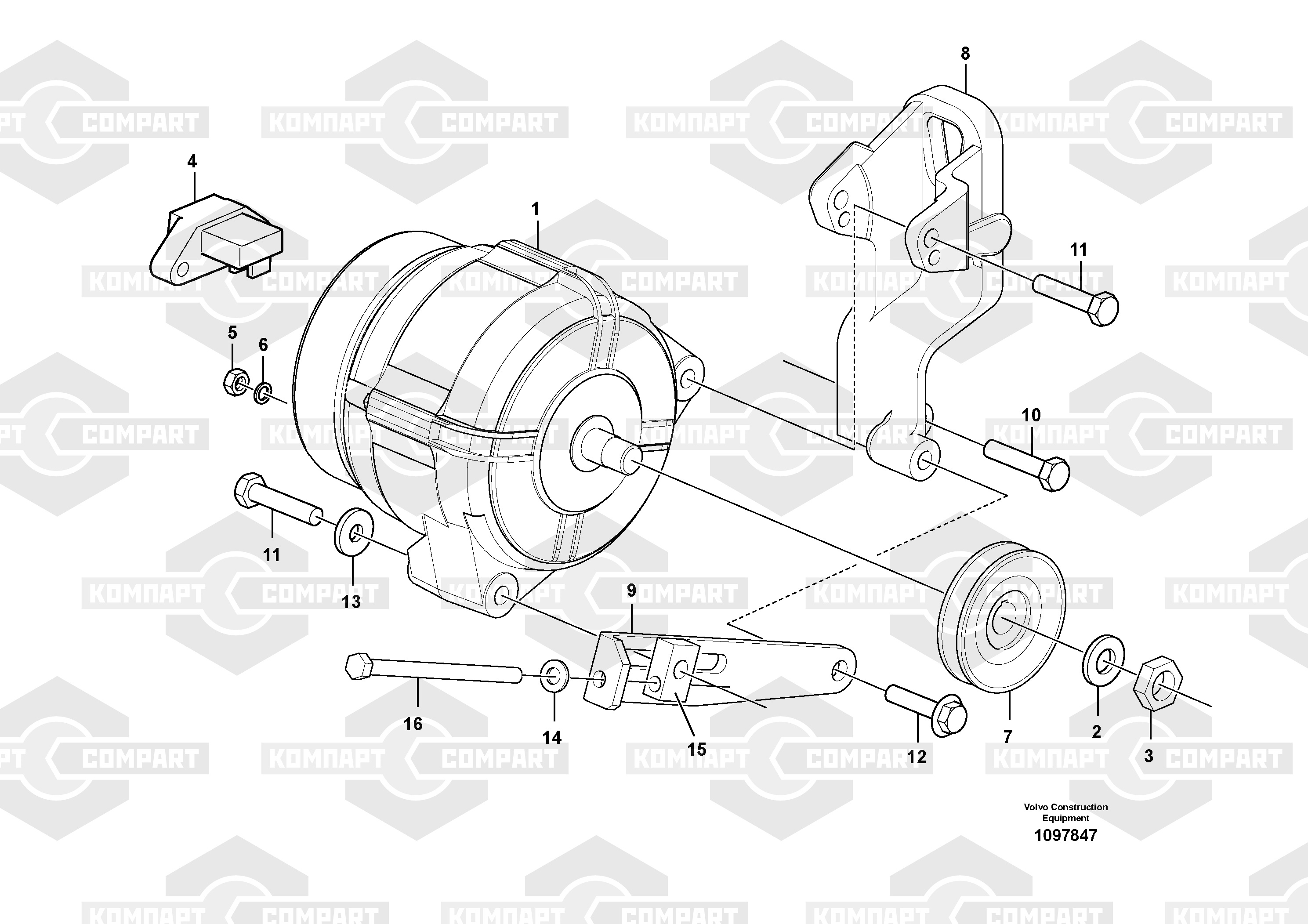 Генератор переменного тока с комплектующими деталями АСФАЛЬТОУКЛАДЧИКА ГУСЕНИЧНОГО VOLVO P7820D S/N 720000 - S/N 725000 -