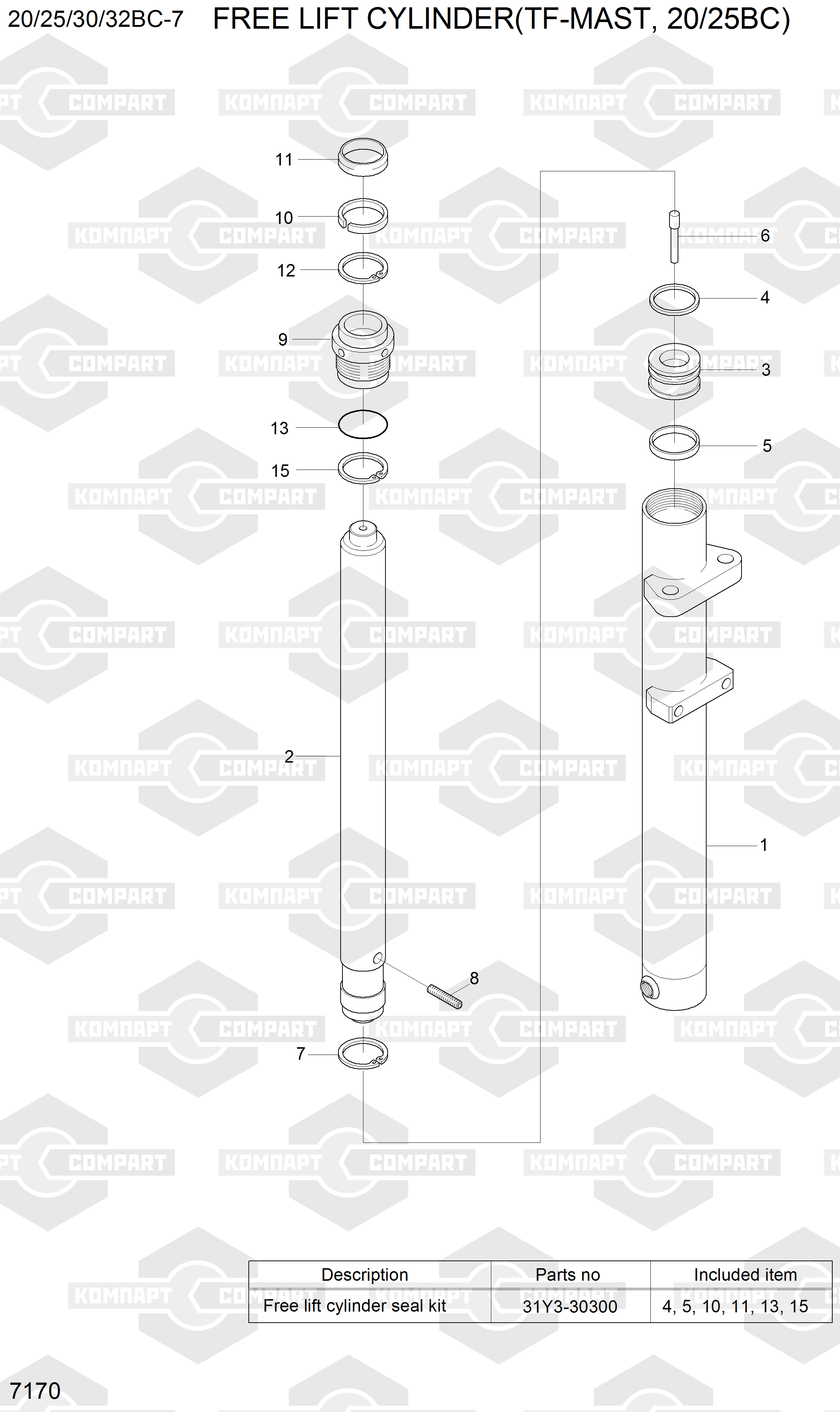 HYUNDAI: 20BC-7, 20BR, 20D-7, 20D-7E, 20DF, 20DT, 20G, 20L, 20LC, 22B-7, 22BHA-7, 25G-7A, 25G-7M, 25GC-7A, 25GC-7M, 25L-7A, 25L-7M, 25LC-7A, 25LC-7M, 25LF
