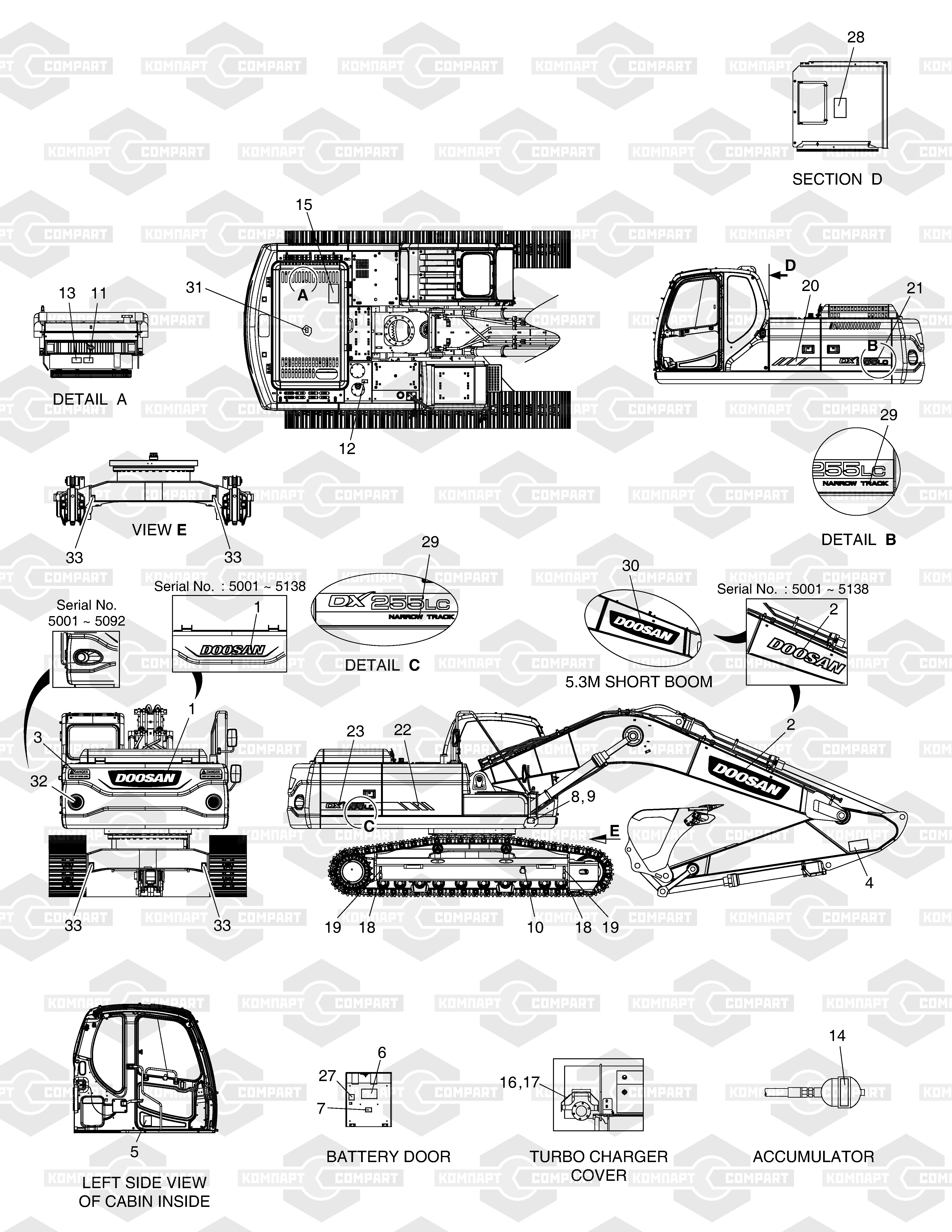 DOOSAN: dx190w, DX190W MATERIAL, DX190WA(T-2), dx210w, DX210W MATERIAL, DX210WA(T-2), DX225LC-3, dx255lc, DX255LC-3, dx260lca, DX300LC, DX300LC-3, DX300LC-5(S/N:1001~1057), dx300lca, dx300ll, DX340LC-3 / DX350LC-3, dx380lc-3, dx420lc-3