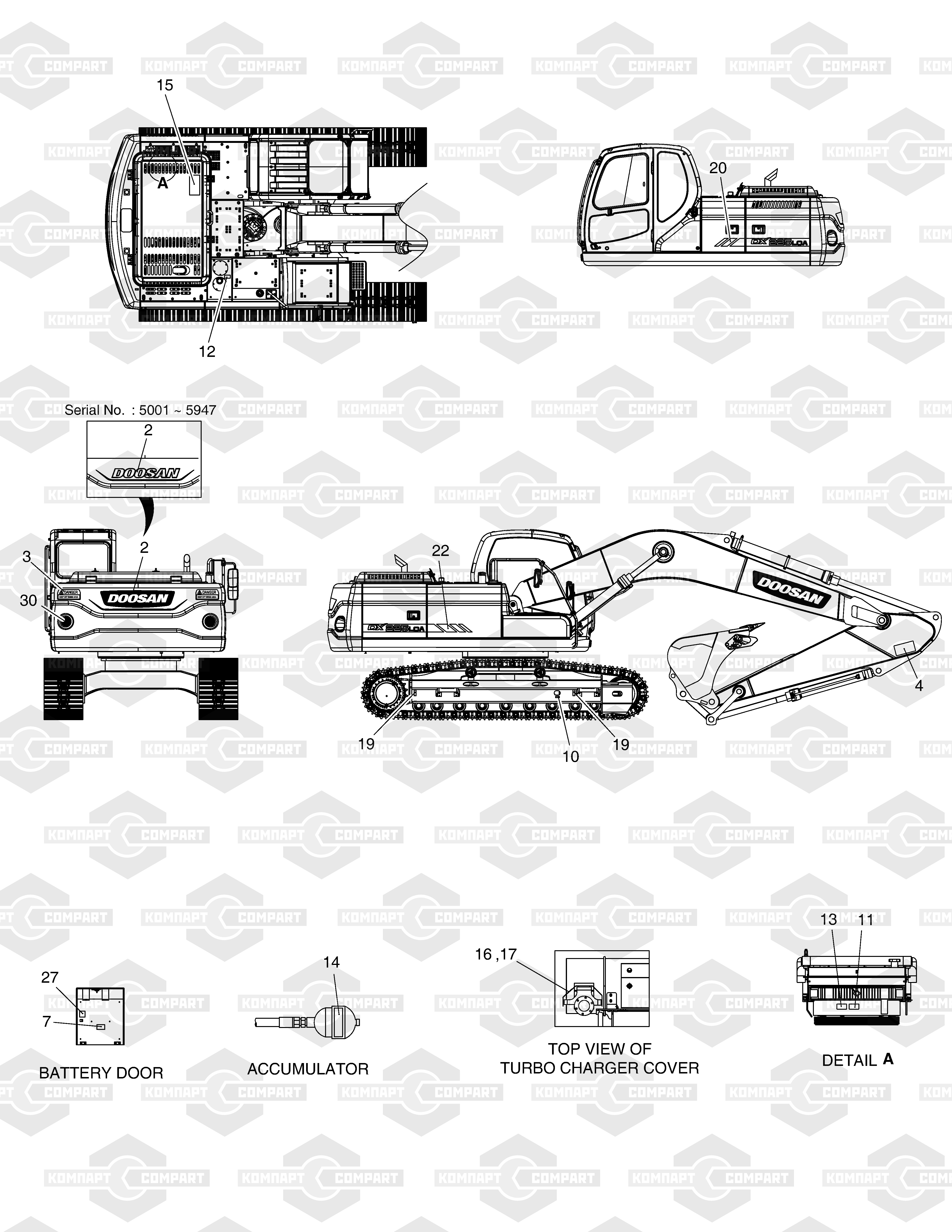 DOOSAN: dl200, dl250, dl300, dl350, DX140W / DX160W TIER-II, DX140W / DX160W TIER-III, dx140w/dx160w, DX160W RAIL WAY, dx170w, dx210w, DX210W MATERIAL, DX220A / DX225LCA, dx225lc, DX225LC (S/N 5433~), dx225ll, DX230LC, dx255lc, MEGA 200-V, MEGA 250-V (S/N 3001~), MEGA 250-V (S/N 4001~), MEGA 500-V TIER-II, S150LC-7B, S80GOLD, SOLAR 140LC-V, solar 140w-v, solar 175lc-v, solar 225lc-v, solar 225ll, SOLAR 225NLC-V, solar 230lc-v, SOLAR 255LC-V, solar 290lc-v, solar 300lc-v, SOLAR 340LC-V